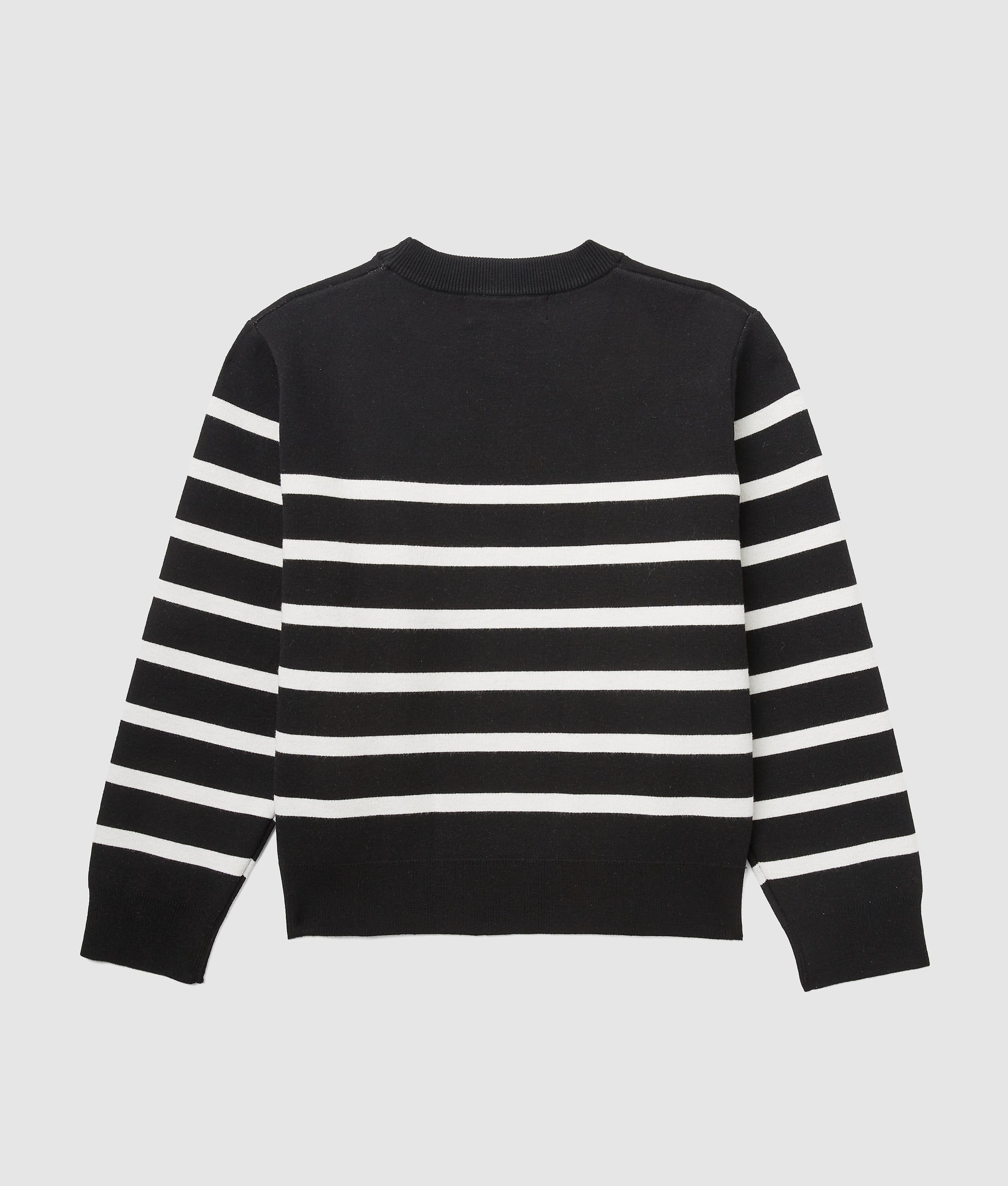 A statement in stripes. This soft knitted sweater features distinctive Monogram artwork at the chest ?? made to stand out. layer up. and last the season.