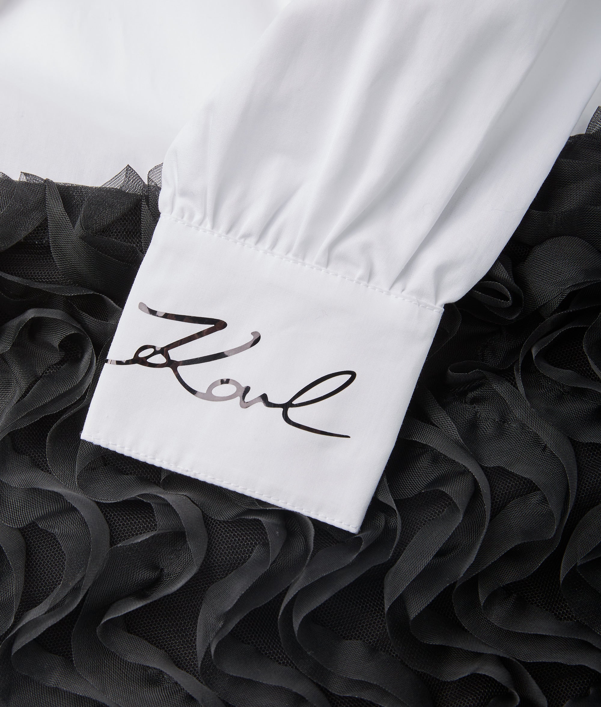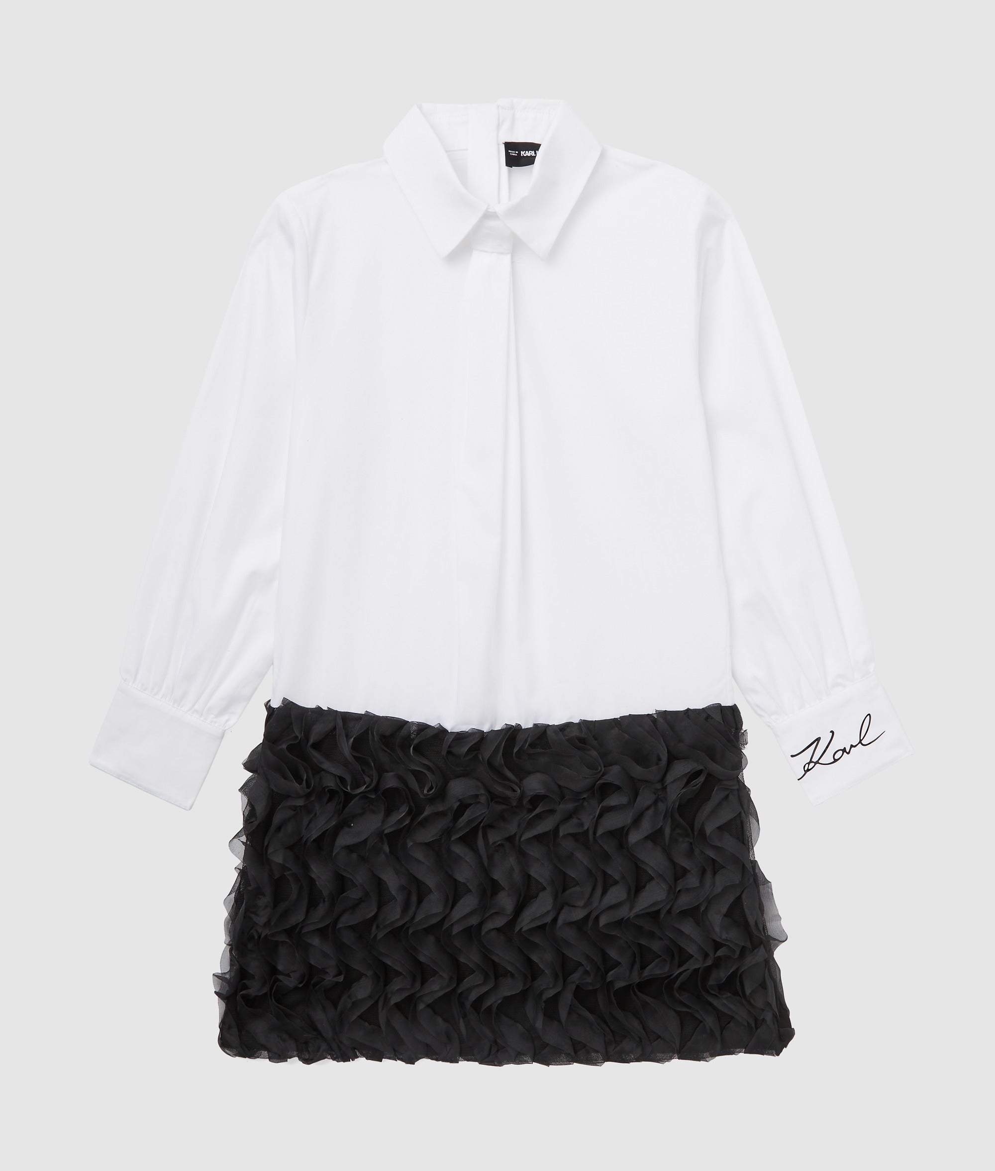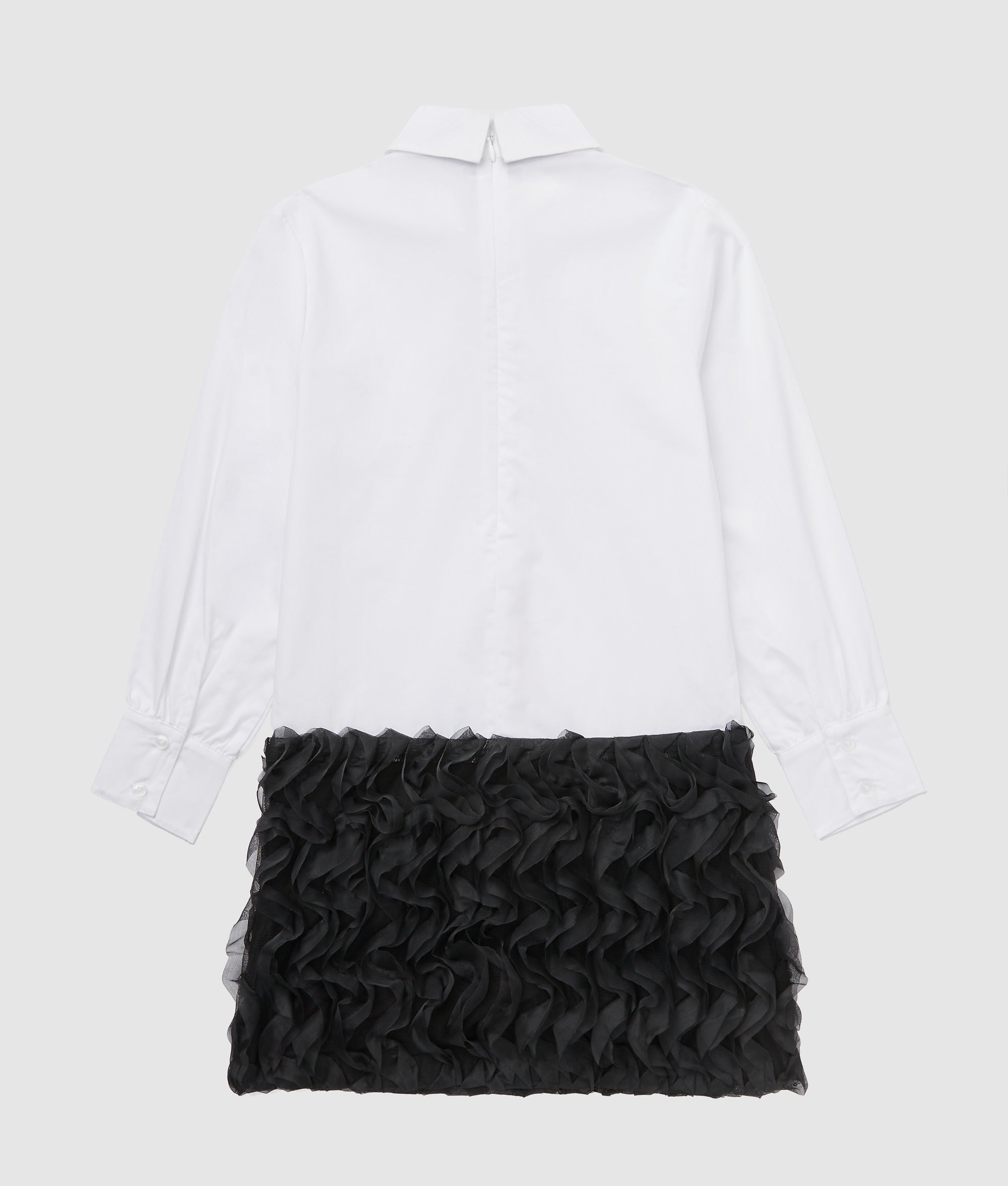 A go-to for birthday parties or days that call for a little extra drama. this dress combines a sharp shirt upper with a playful layered mesh skirt.
