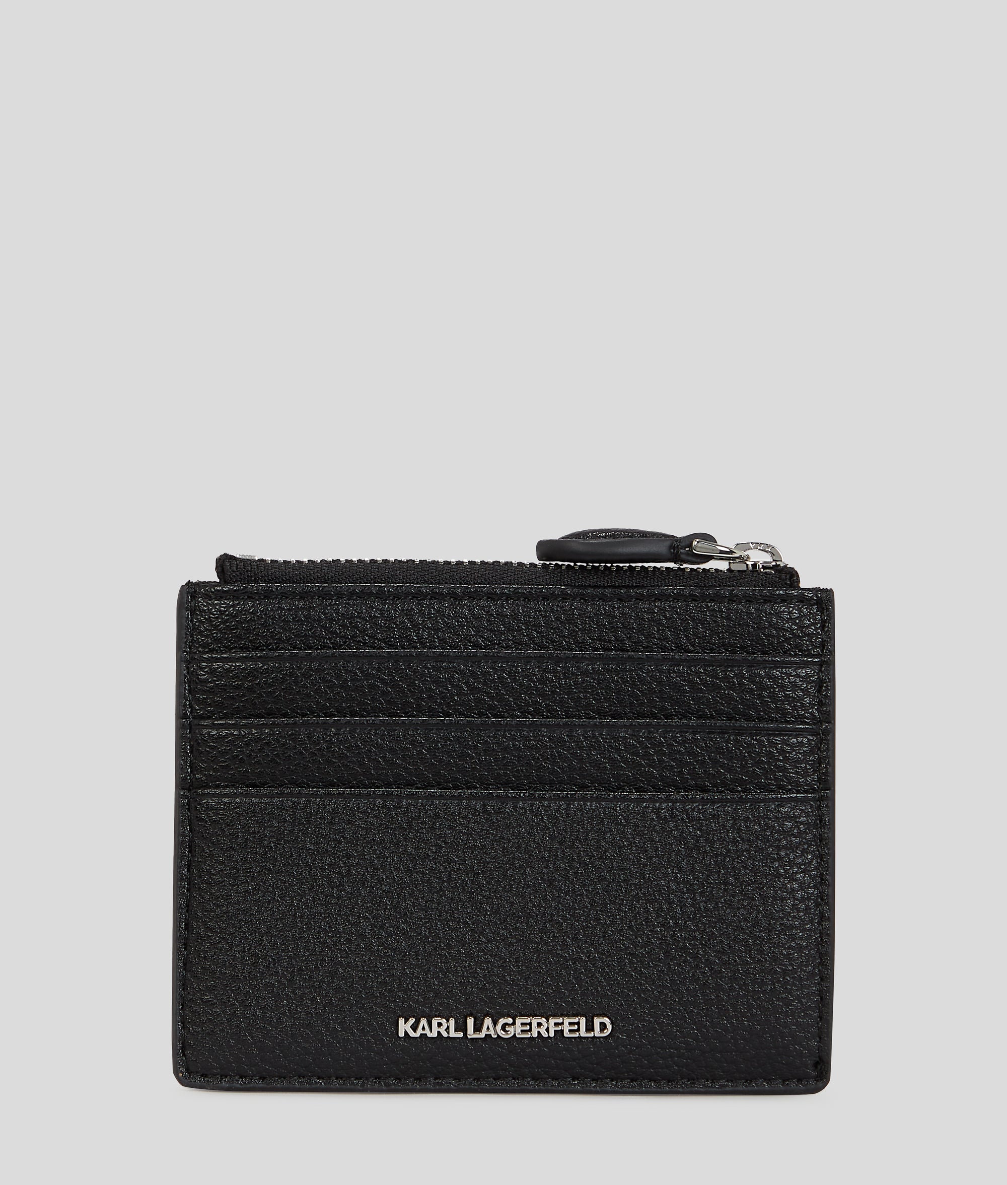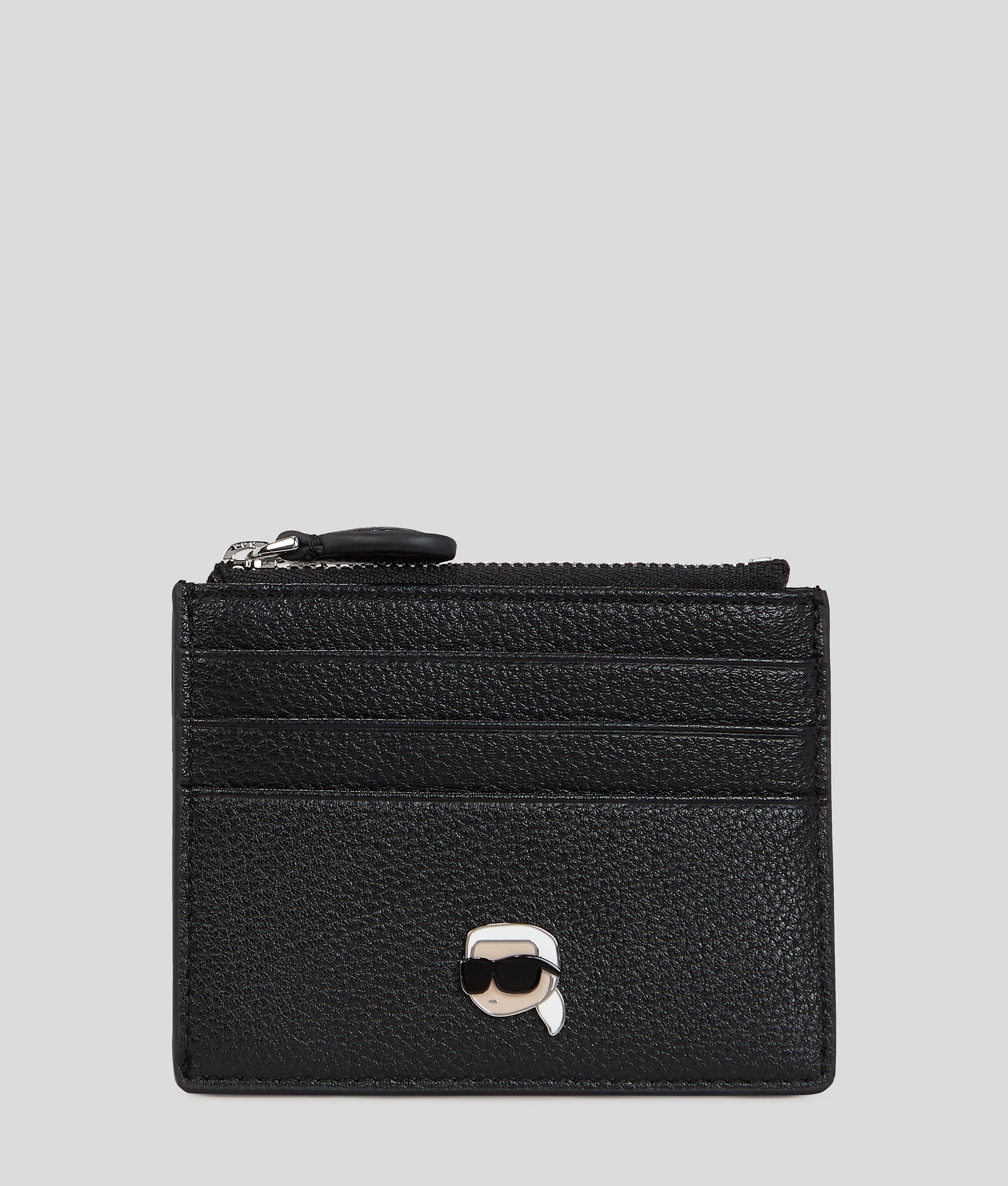 Elevate your accessory game with this sleek cardholder. featuring a playful Ikon Karl pin. Its zip-top middle compartment and multiple card slots ensure both style and practicality. making it a must-have for daily use.