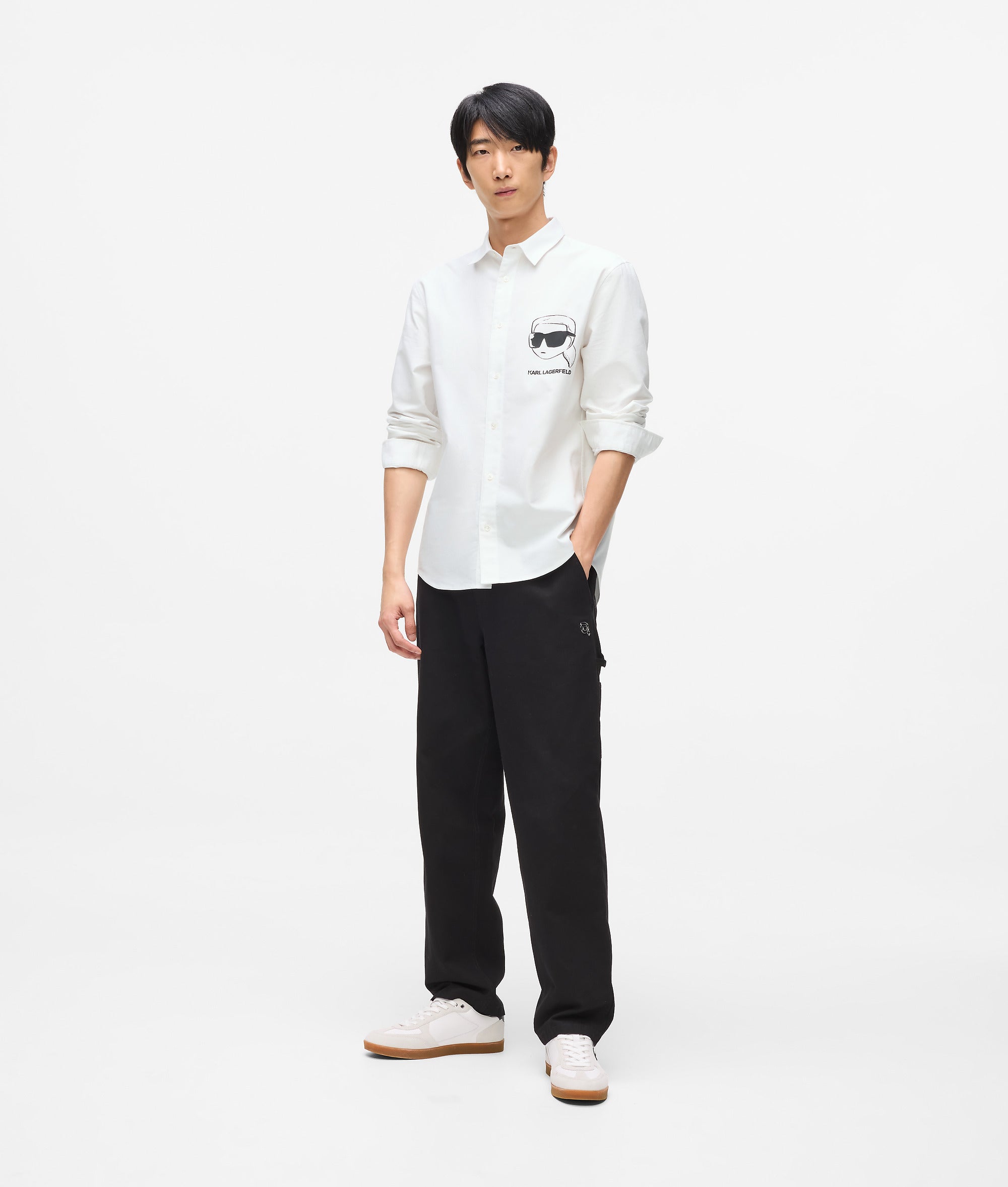 This crisp cotton shirt features sketched Ikon artwork. bringing a bold. artistic touch to classic tailoring.?