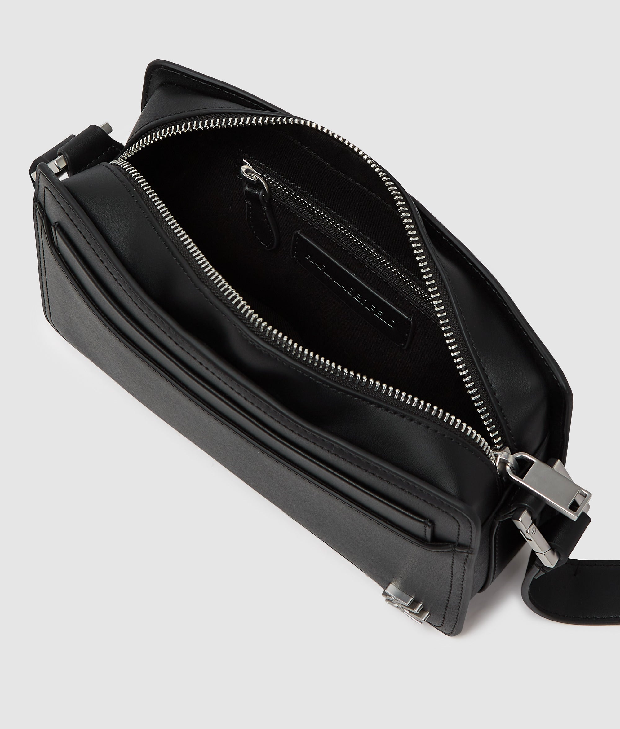 The K/Autograph camera bag offers timeless style with a contemporary edge. Featuring a secure zip closure. with a sleek front slip pocket and versatile strap. anchored by minimalist Karl Autograph hardware.