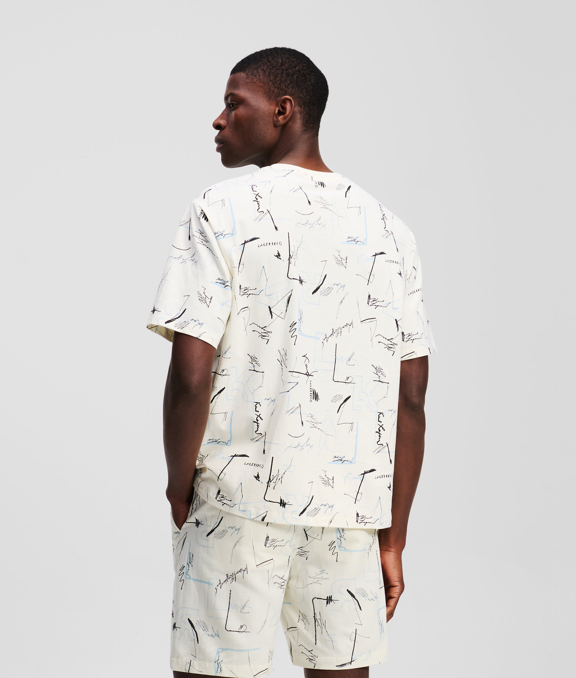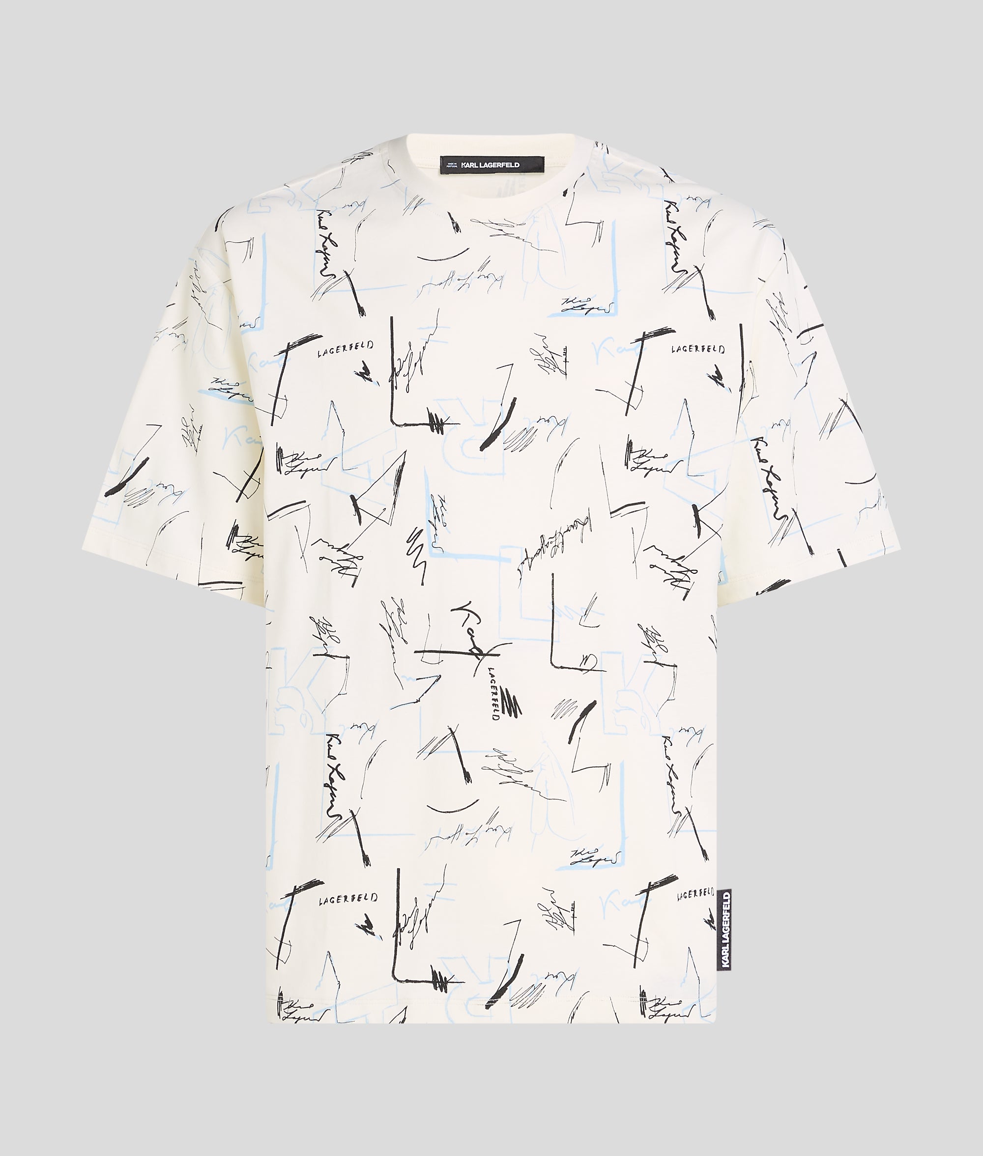 Step into a world of artistic expression with this all-over print T-shirt. Inspired by original sketches from Karl Lagerfeld’s archive. the vibrant design brings a creative spirit to everyday wear.