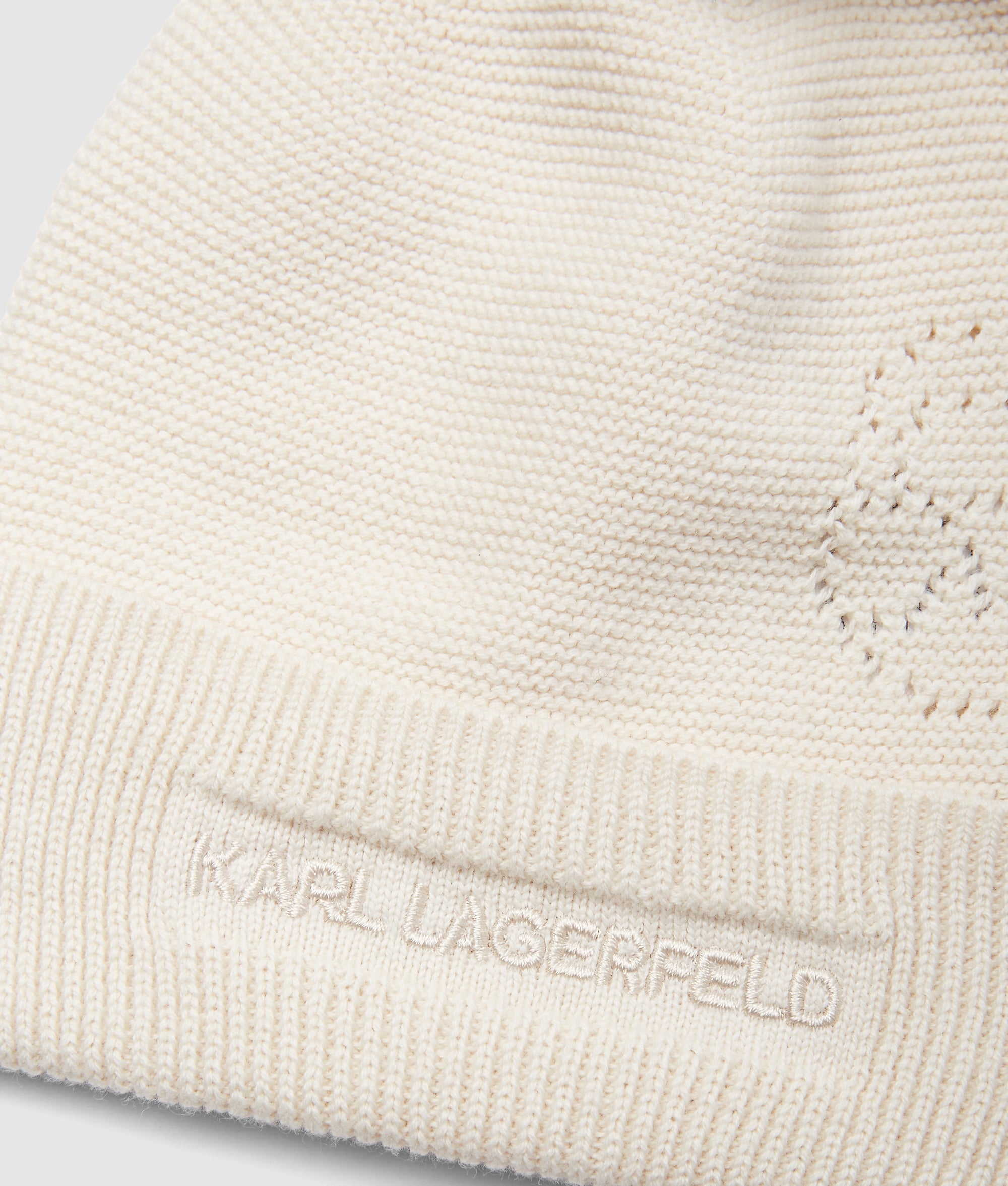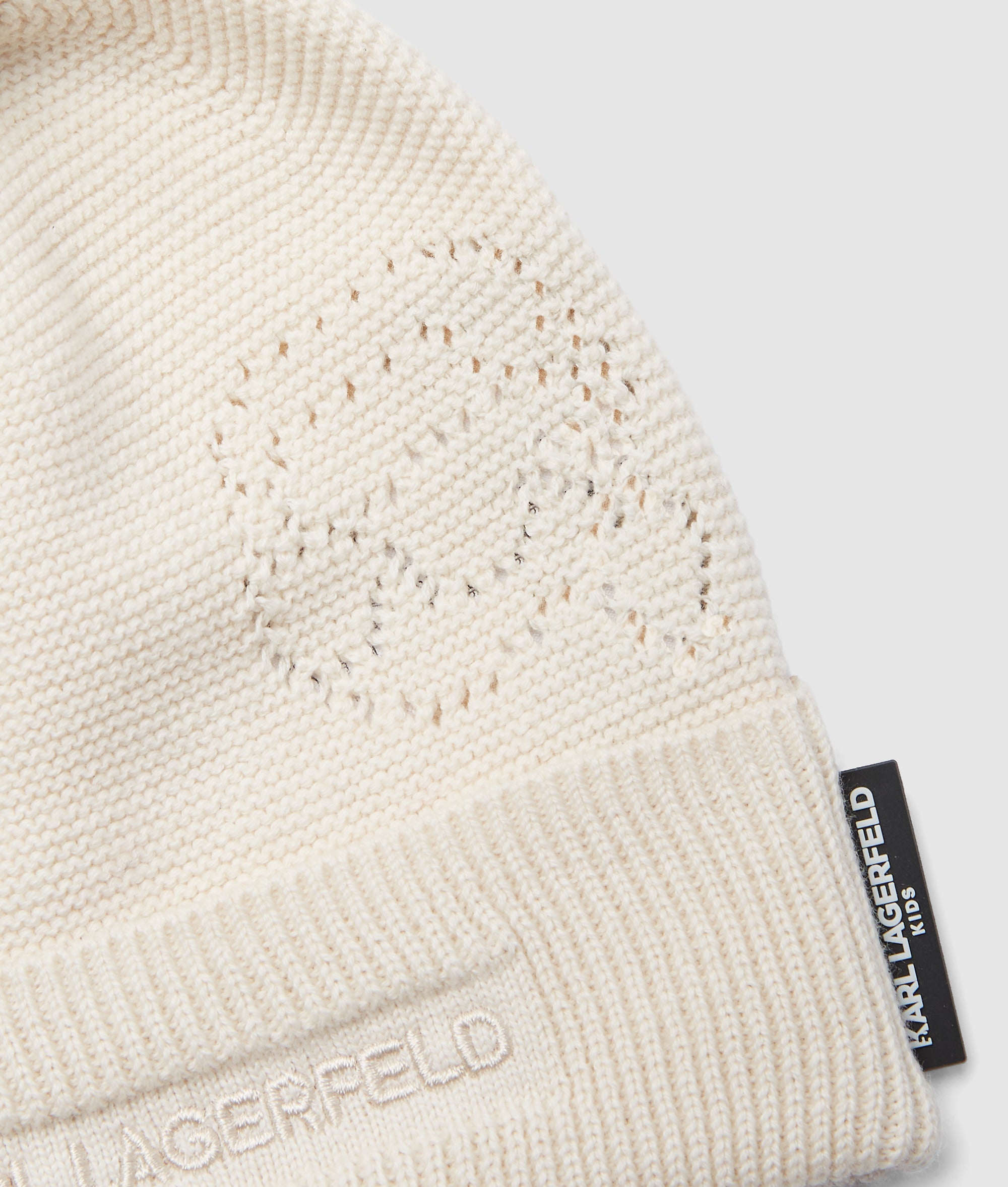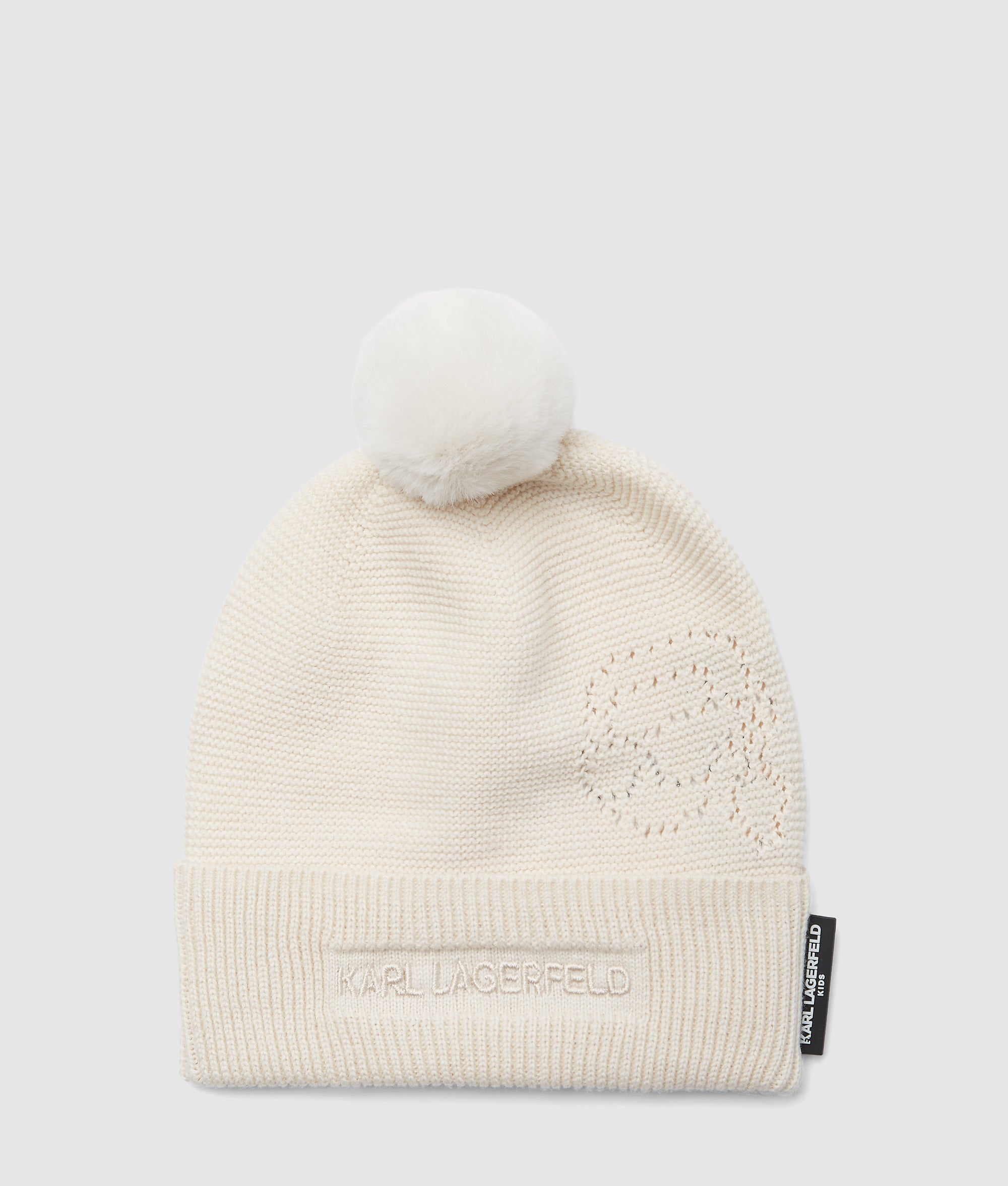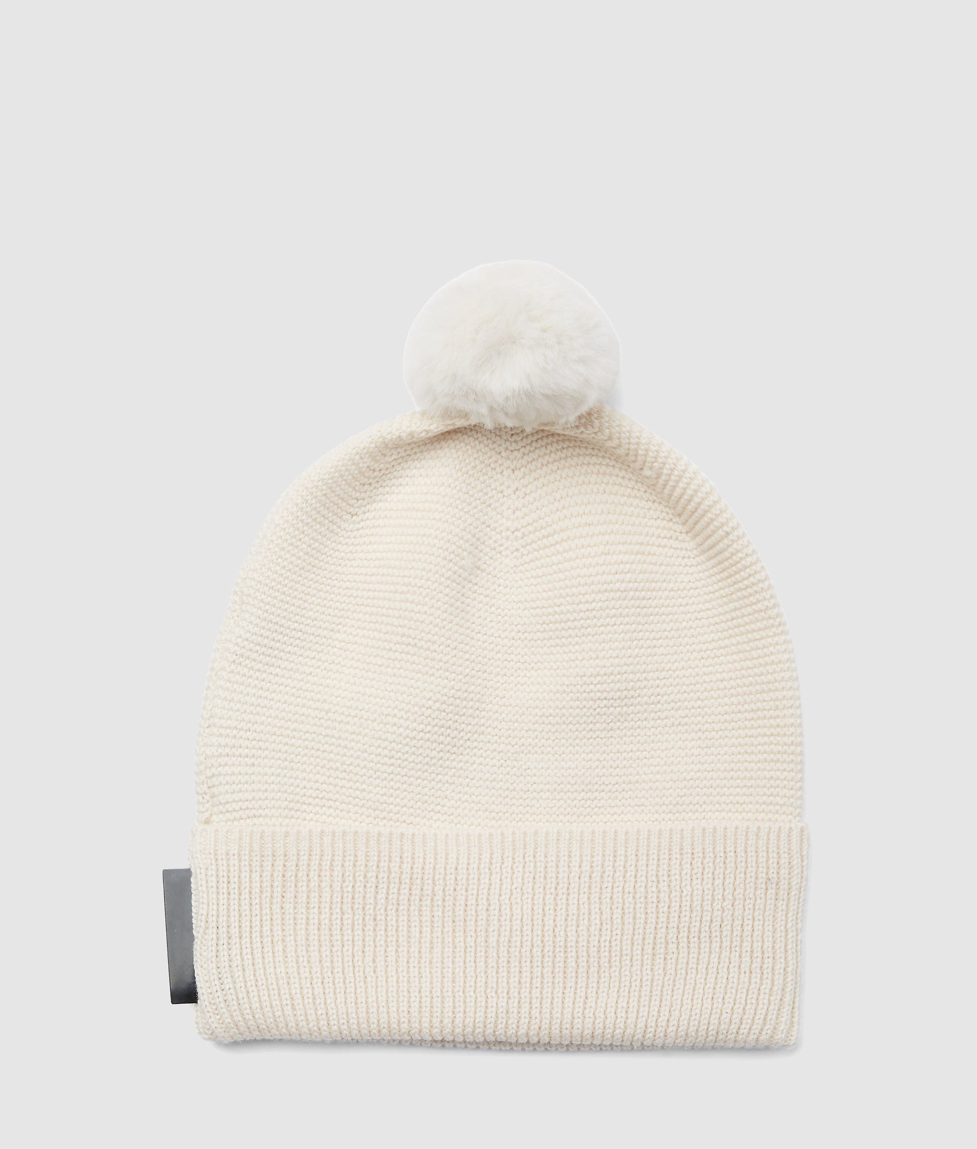 A playful pom-pom tops this cozy knitted beanie. while a ribbed brim adds gentle stretch and subtle logo detail for a snug. stylish fit for newborns.