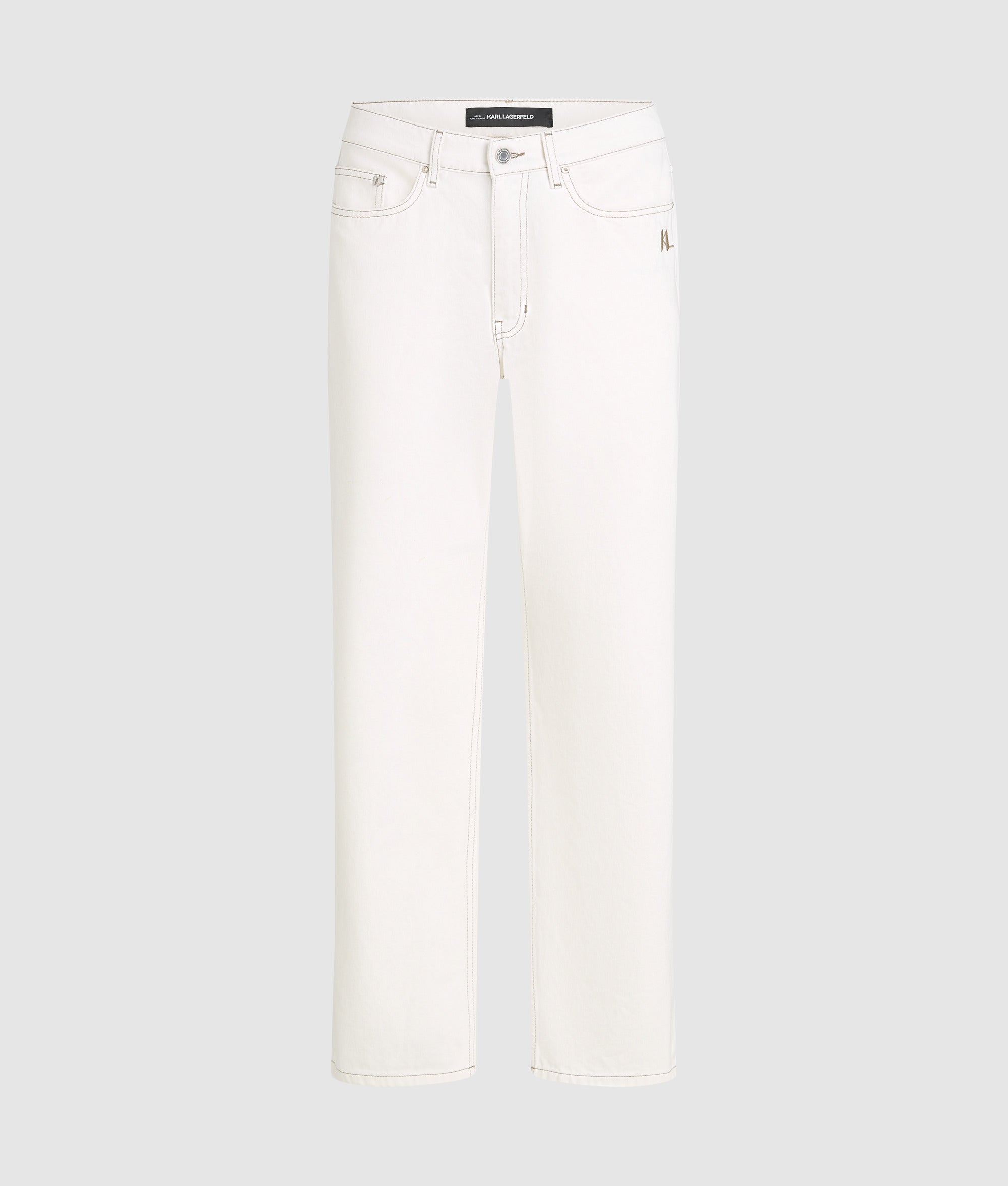 For a fresh take on a casual staple. these jeans feature eye-catching contrast stitching. A KARL LAGERFELD logo patch graces the back waistband. making them a standout piece ?C perfect for pairing with the matching shirt for a cohesive look.
