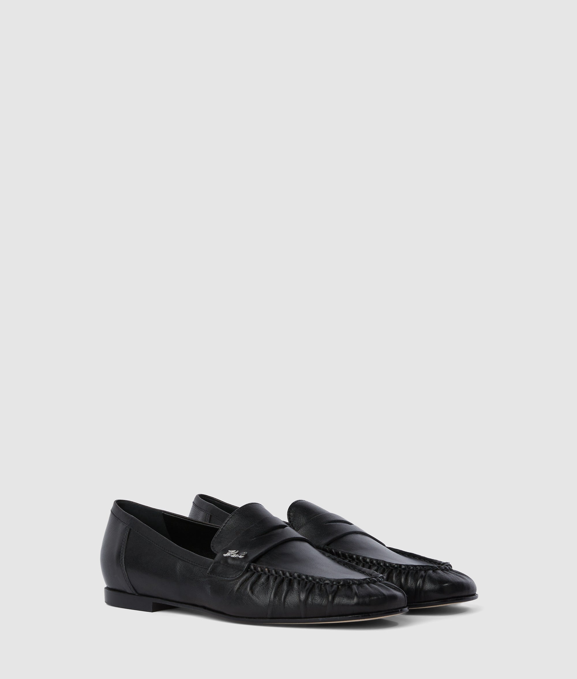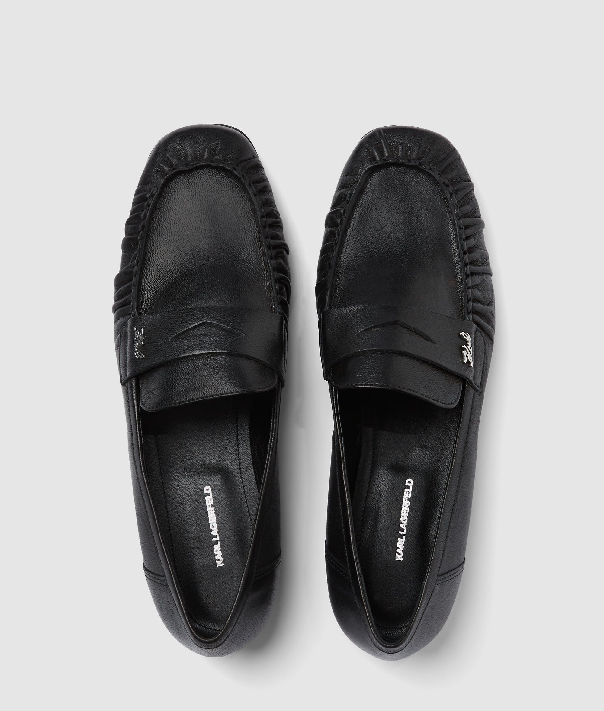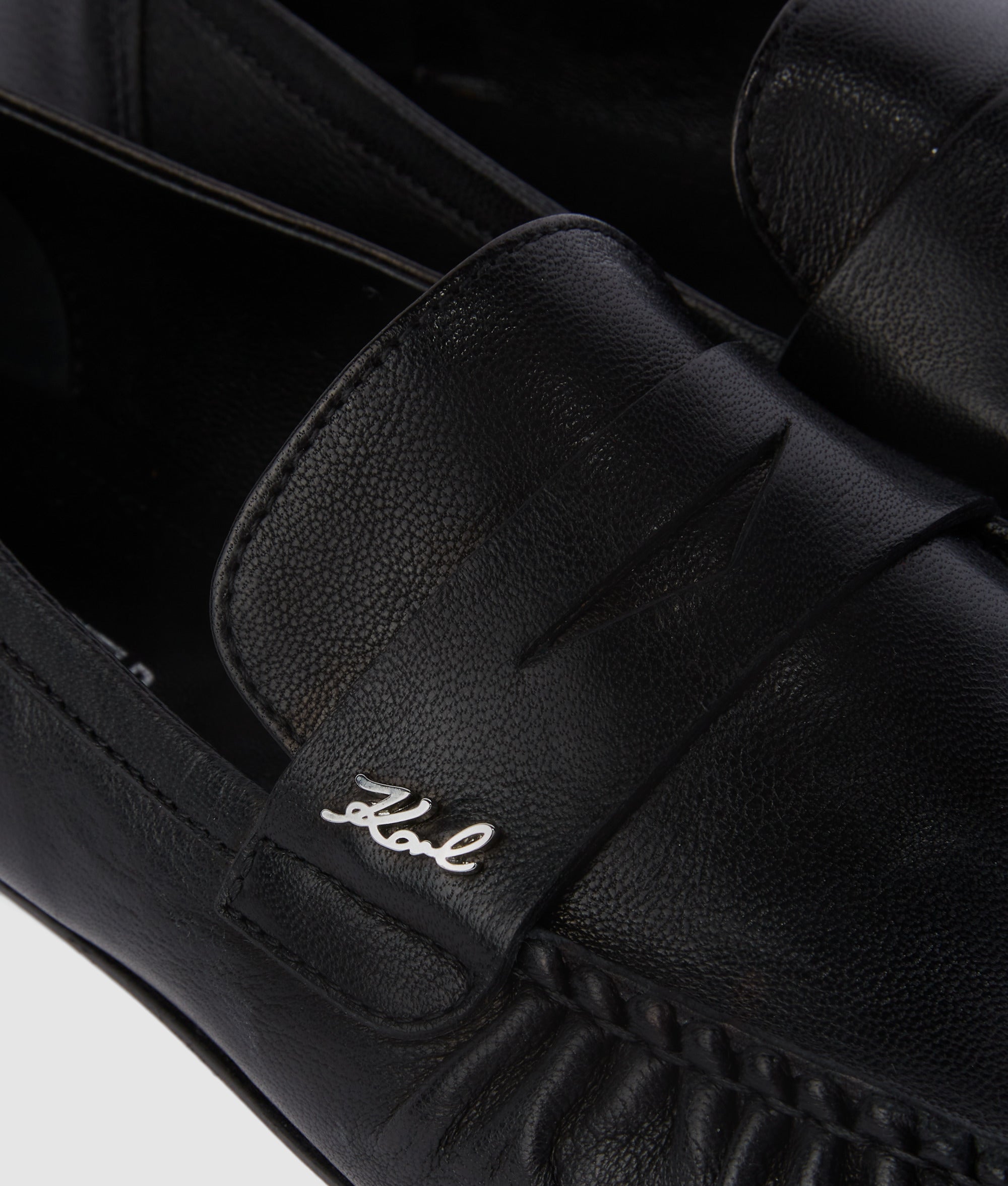 Timeless design is given a contemporary twist in these classic loafers. crafted from suede with a bold animal print. The slip-on design ensures effortless wear. while the subtle Karl Signature adds an elegant touch.