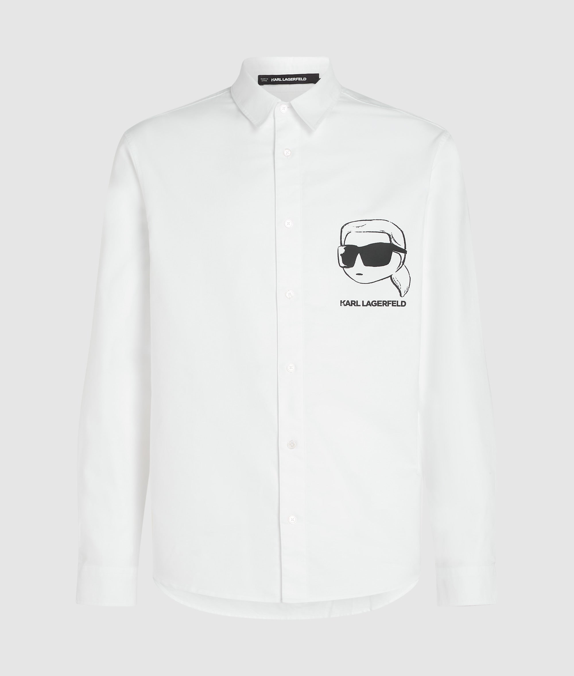 This crisp cotton shirt features sketched Ikon artwork. bringing a bold. artistic touch to classic tailoring.?