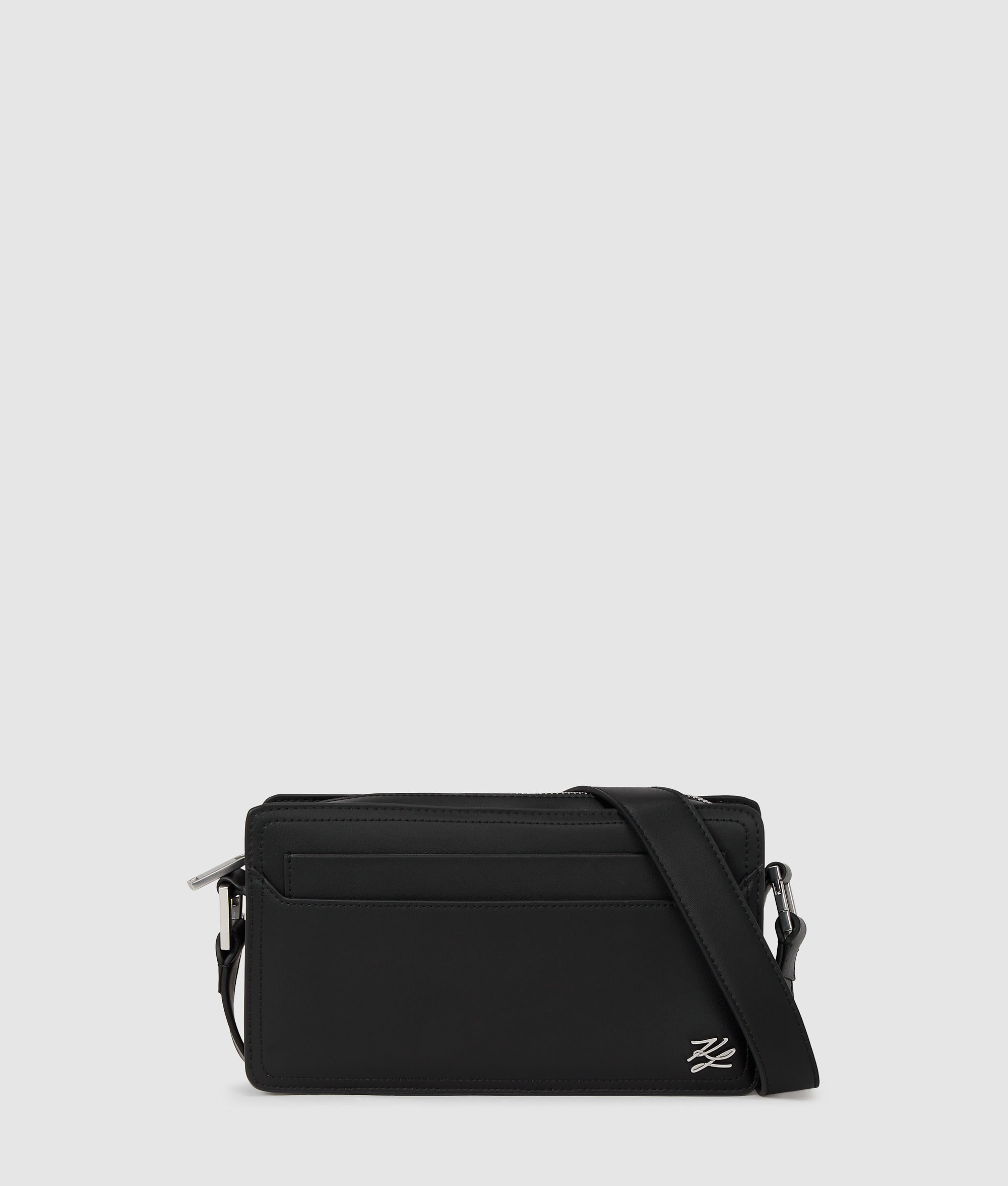 The K/Autograph camera bag offers timeless style with a contemporary edge. Featuring a secure zip closure. with a sleek front slip pocket and versatile strap. anchored by minimalist Karl Autograph hardware.