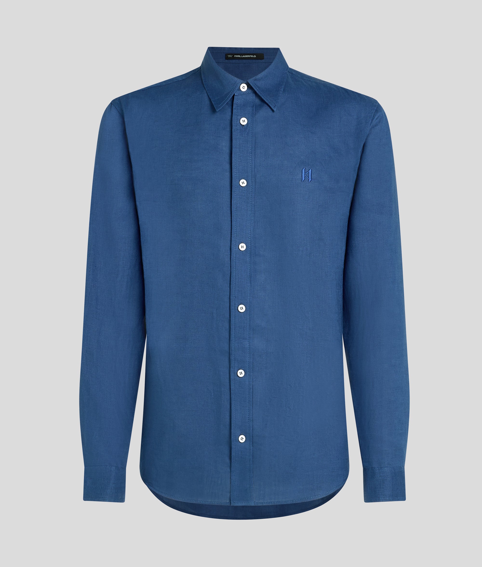 Crafted in lightweight. breathable linen. this classic long-sleeved shirt embodies a refined-yet-breezy aesthetic. Featuring a pointed collar and button fastenings. complemented by subtle KARL Monogram embroidery at the chest.